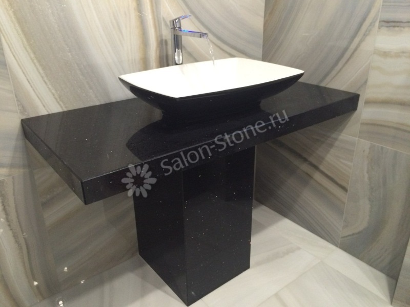 Столешница необычной формы черного цвета с вырезом под мойку